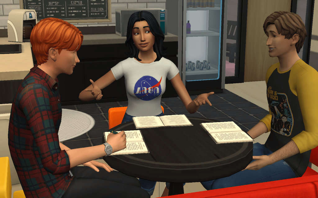 The trio also spends a lot of time in the library, studying and writing term papers. Everything is going great, until…