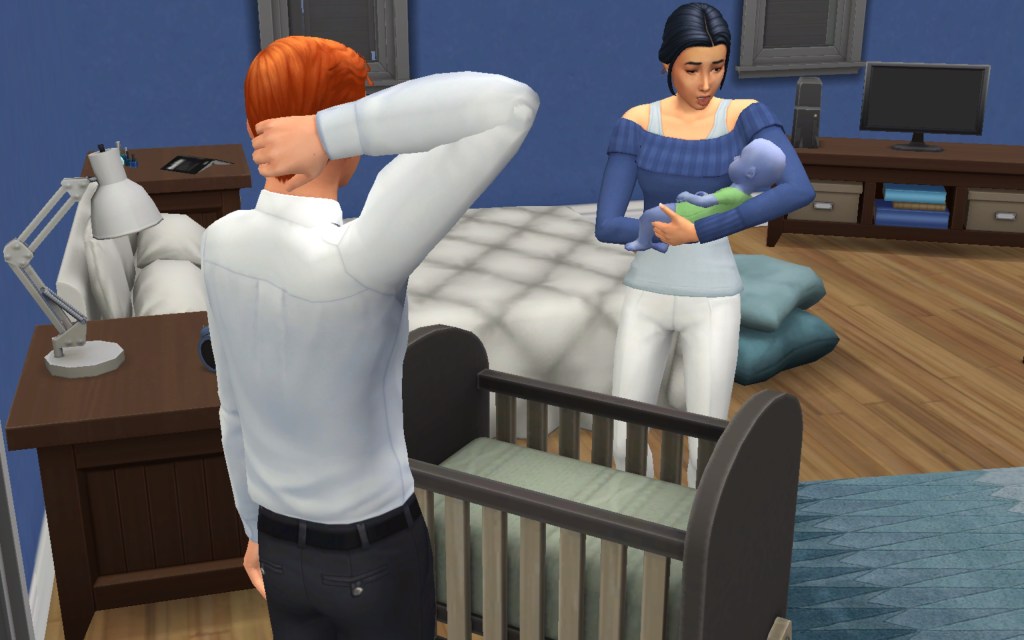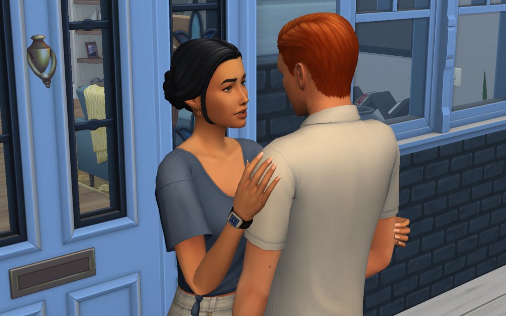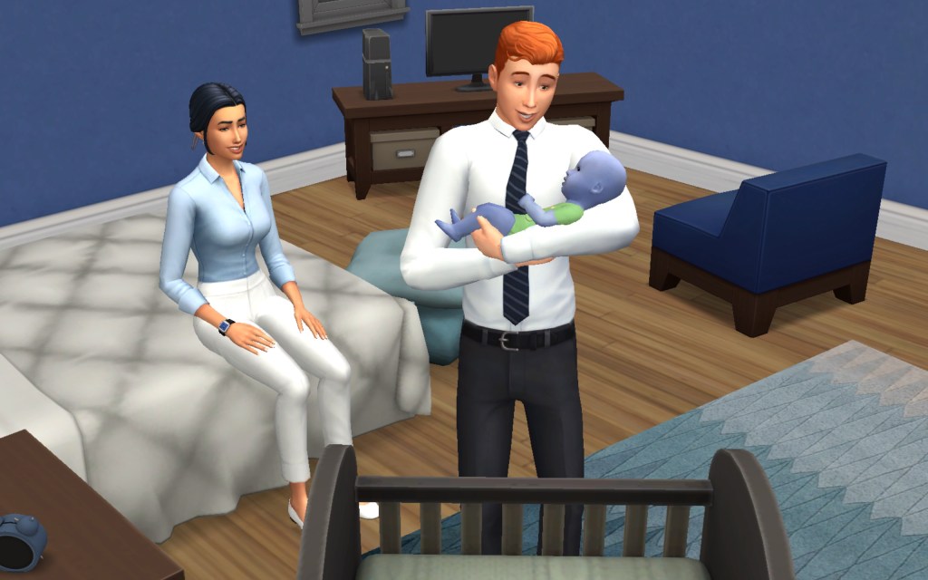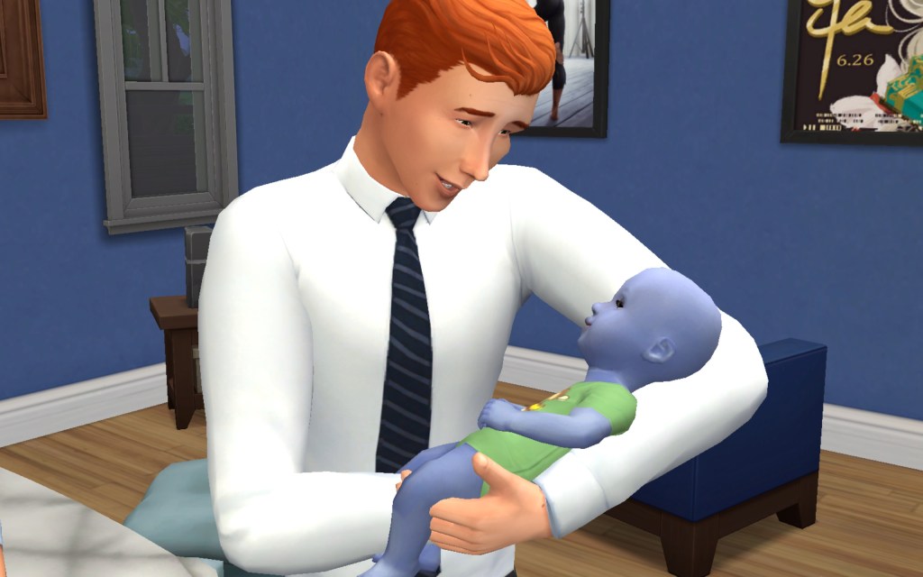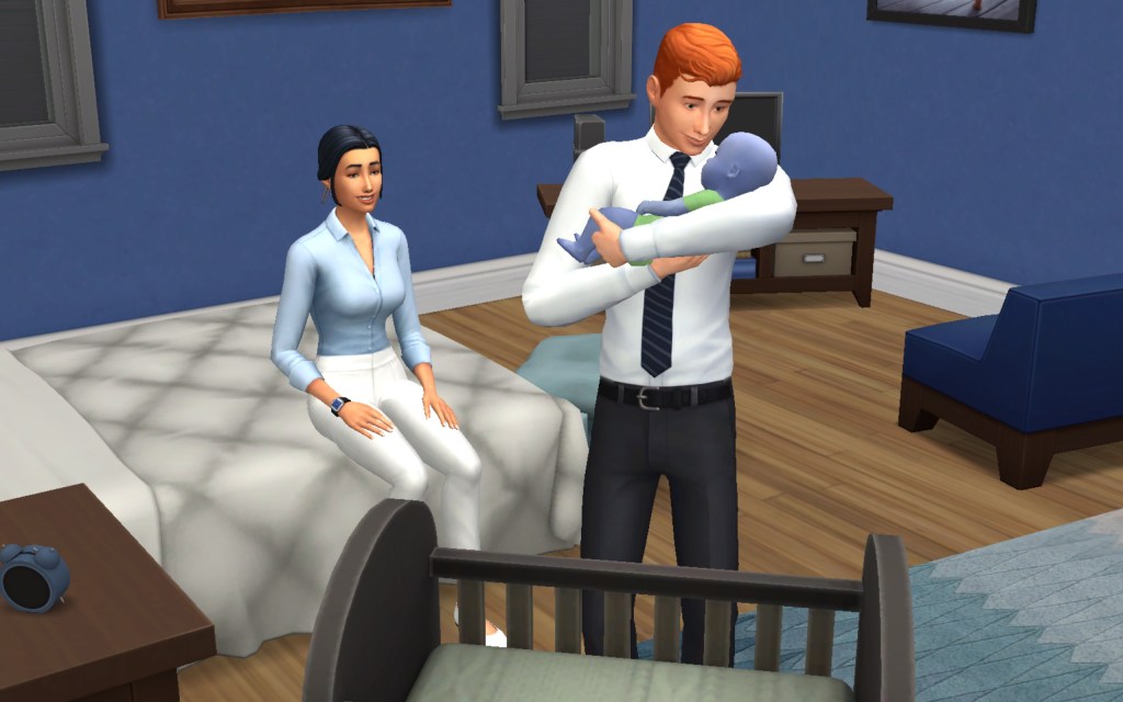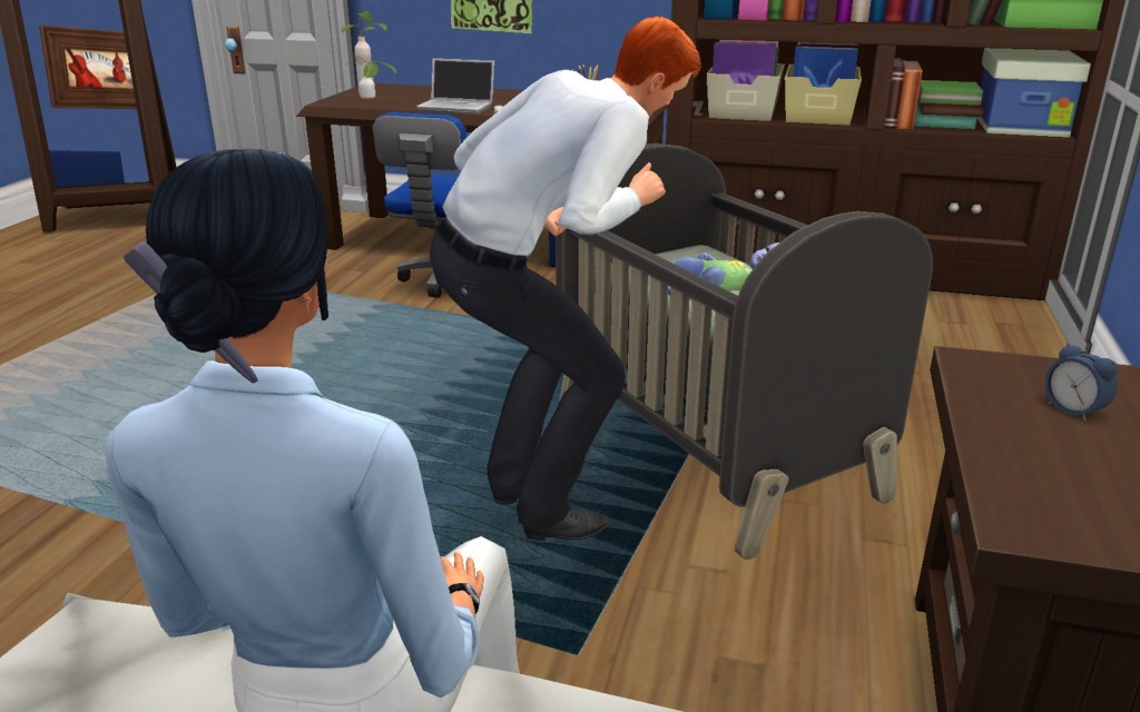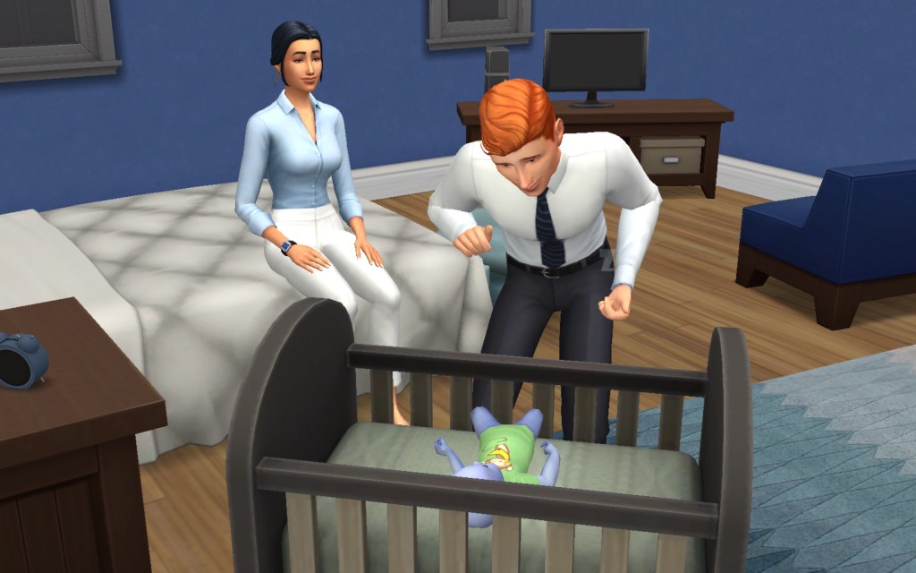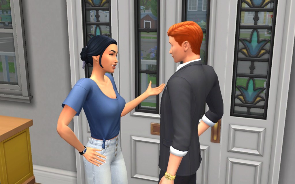 Cora also gets updated on the office drama. Her colleague Elsa thought she was too old to have more kids, but suddenly found herself pregnant and gave birth to a little girl – with black hair. Her very blonde husband Lucas was not impressed. A paternity test and two divorces later, Elsa and Cora’s supervisor Payton now live in a San Myshuno apartment with their baby daughter.