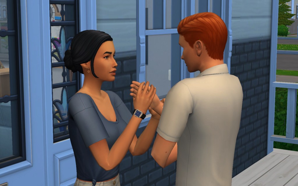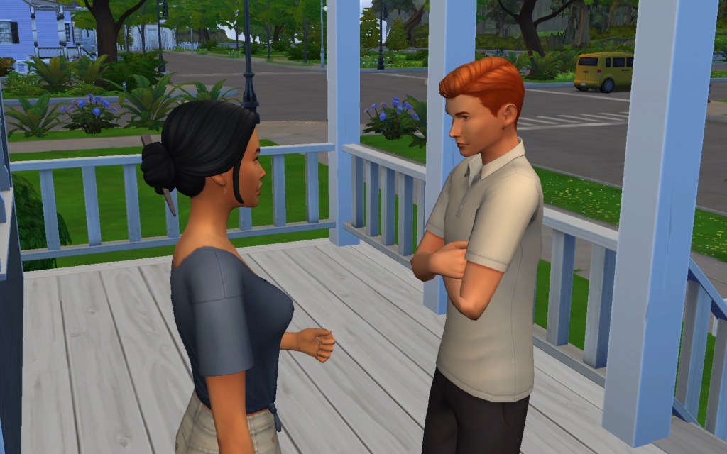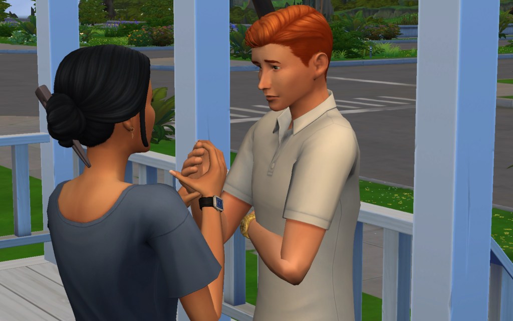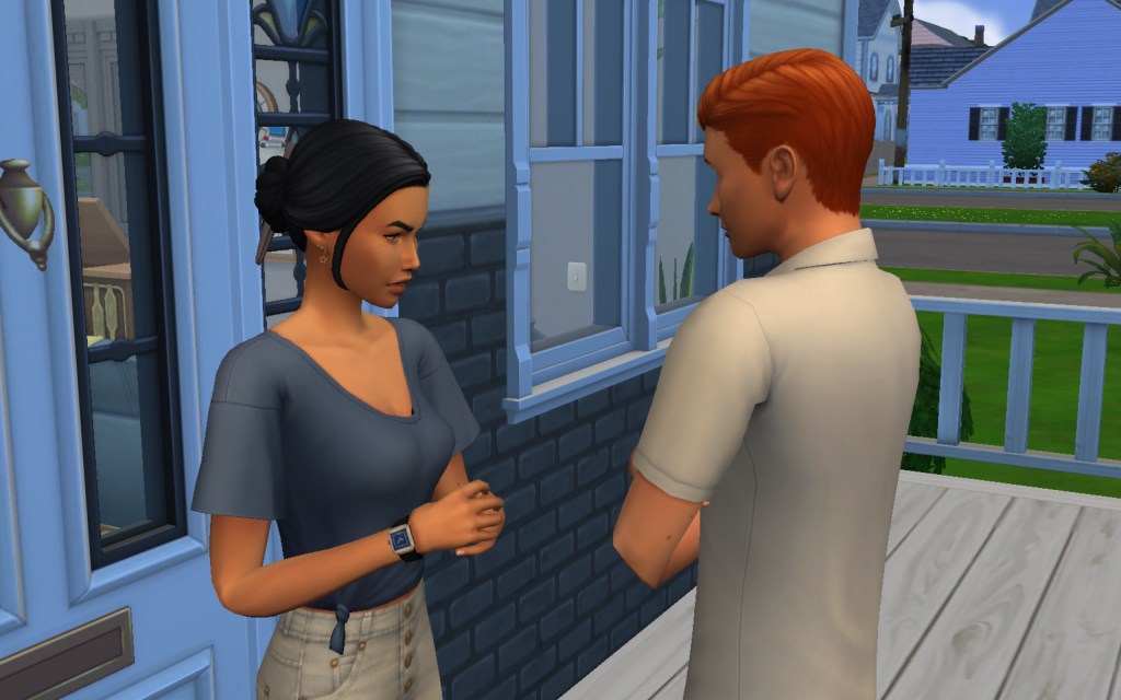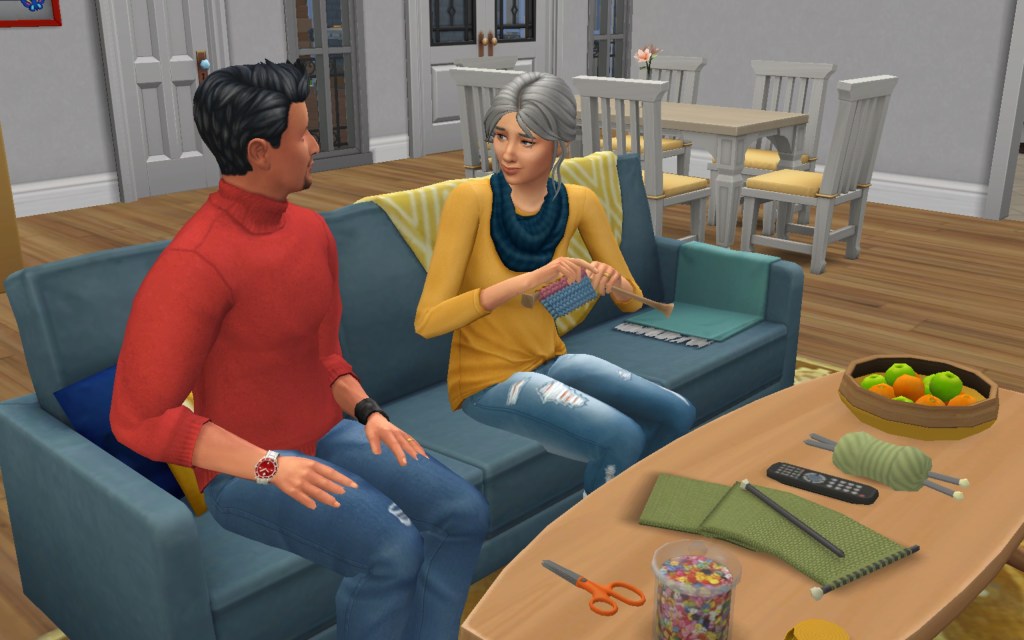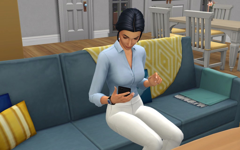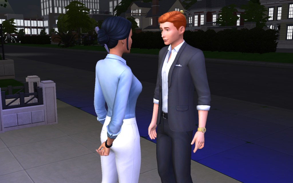 Cora also gets updated on the office drama. Her colleague Elsa thought she was too old to have more kids, but suddenly found herself pregnant and gave birth to a little girl – with black hair. Her very blonde husband Lucas was not impressed. A paternity test and two divorces later, Elsa and Cora’s supervisor Payton now live in a San Myshuno apartment with their baby daughter.