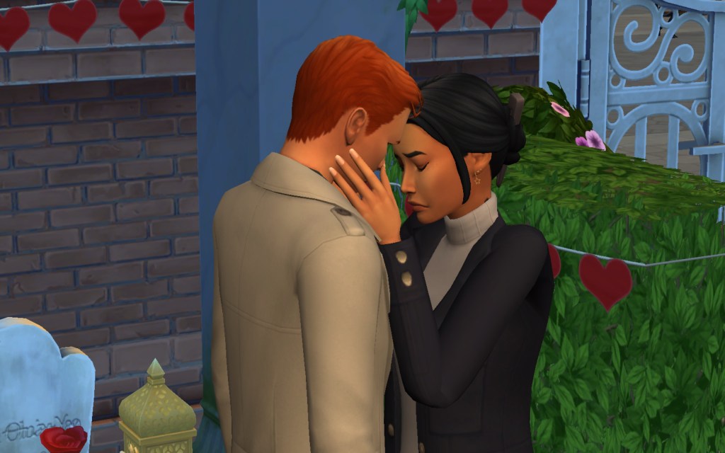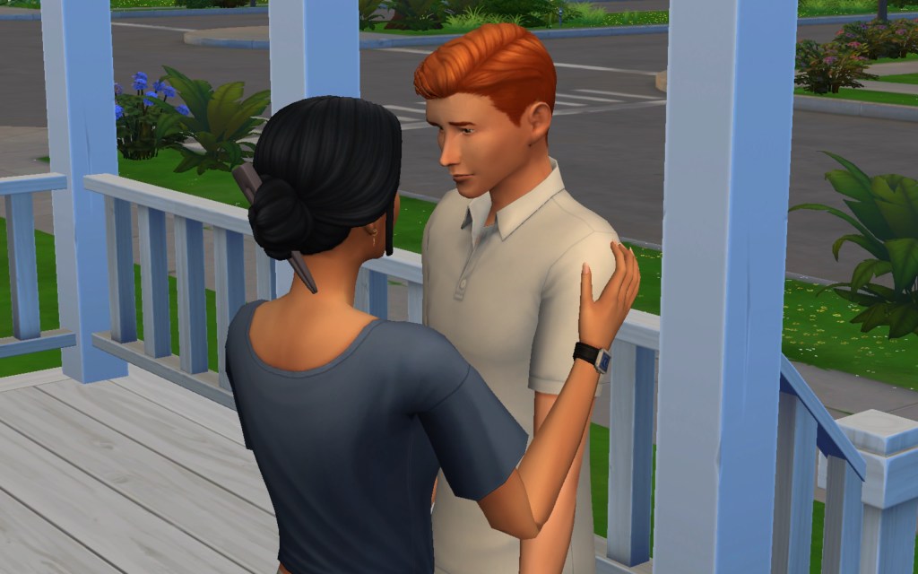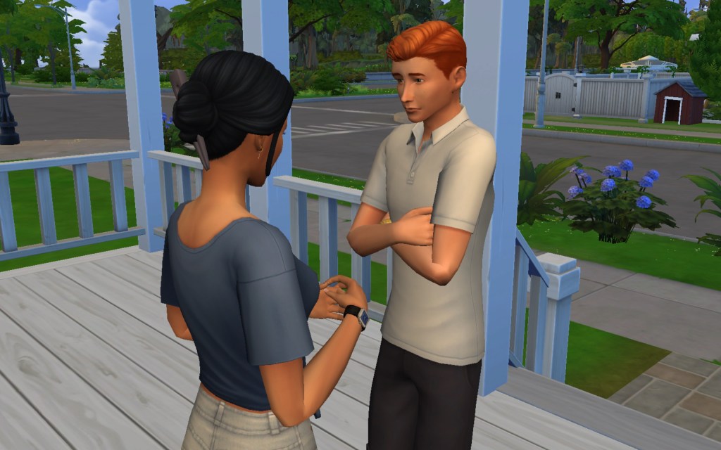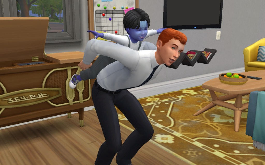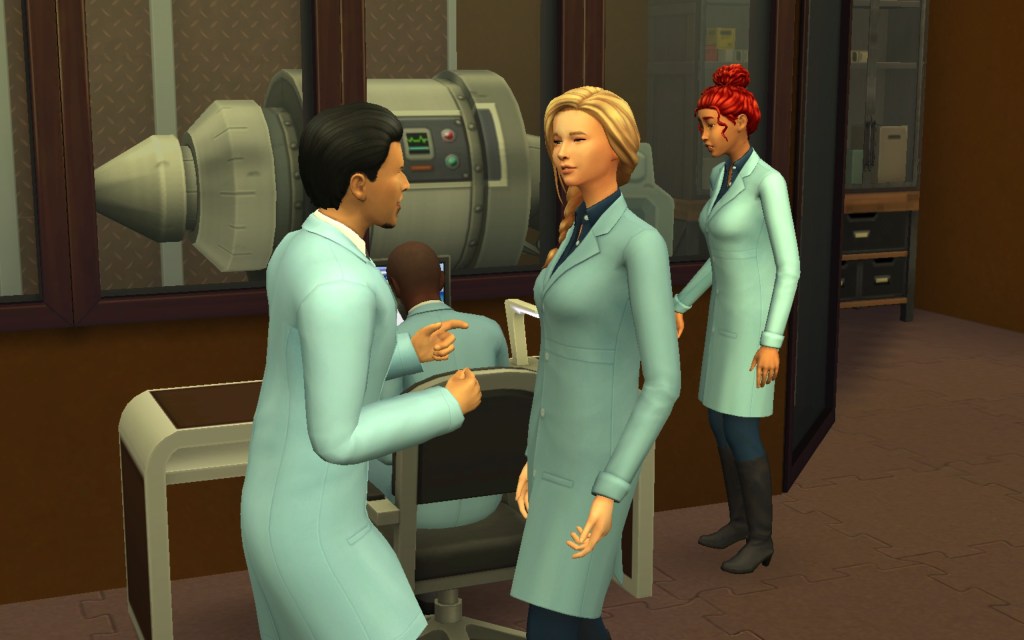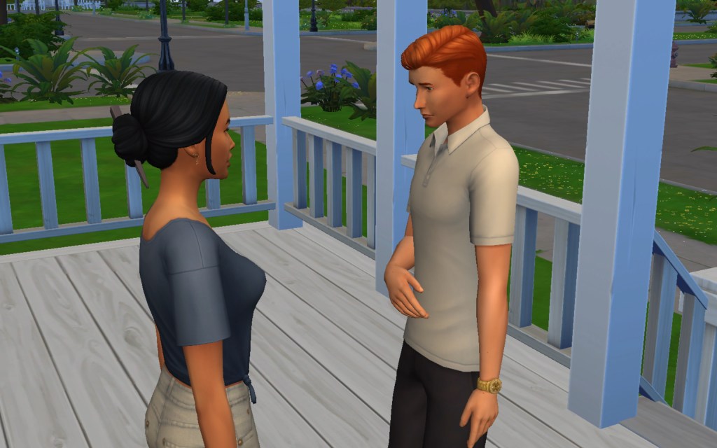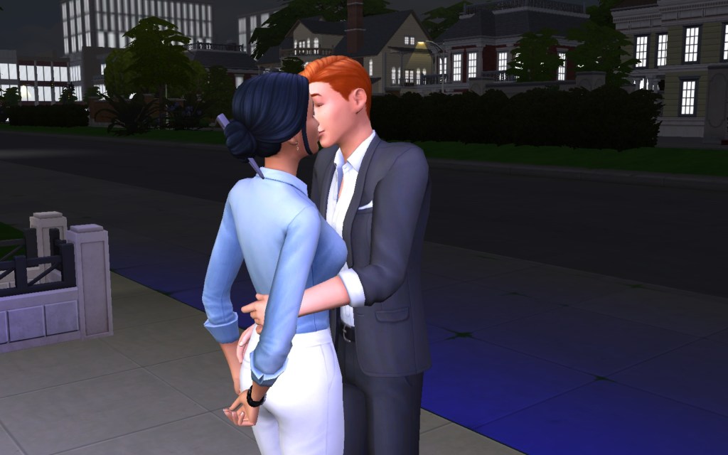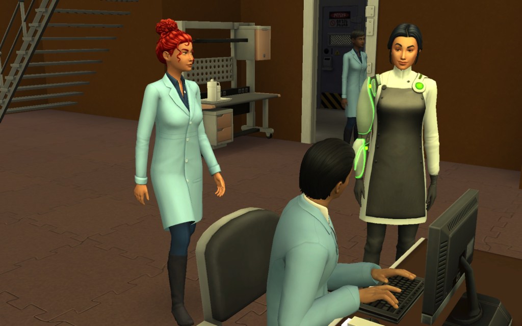 Cora also gets updated on the office drama. Her colleague Elsa thought she was too old to have more kids, but suddenly found herself pregnant and gave birth to a little girl – with black hair. Her very blonde husband Lucas was not impressed. A paternity test and two divorces later, Elsa and Cora’s supervisor Payton now live in a San Myshuno apartment with their baby daughter.