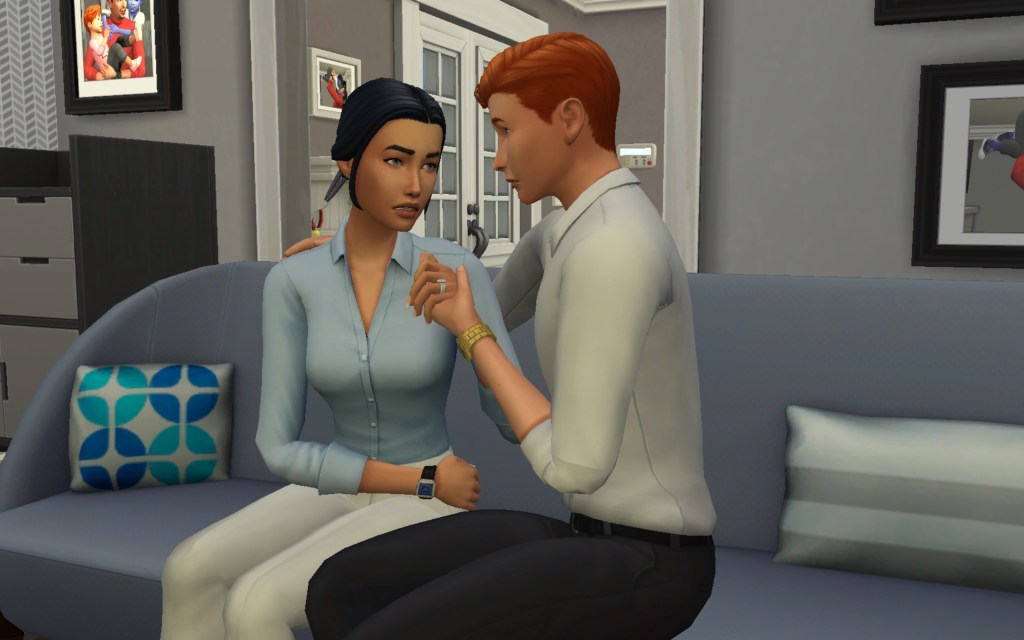 One night, after tucking in the boys, Zane finds Cora crying quietly in the living room.