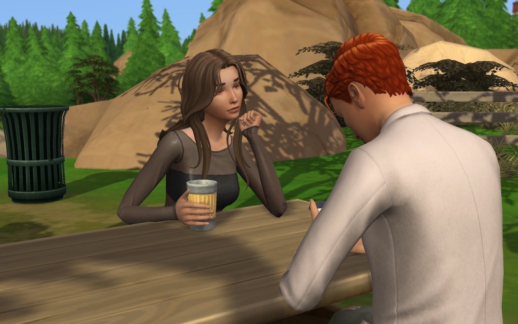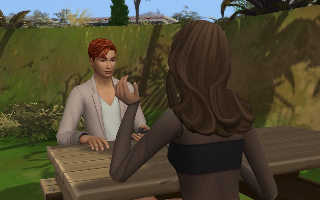 We sat in a nearby picnic area. I was a bit shy, and a little startled by her taking the initiative like that, so I nervously messed around on my phone, but Cecilia wasn’t having it.