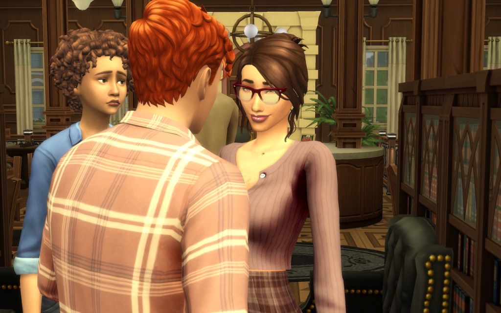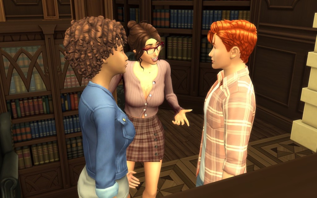 I tried my hardest not to stare at her, but it almost felt like she had positioned herself in a way that made it impossible to look at her face without looking at her cleavage. I started getting a bit flustered and I could feel the heat in my cheeks.