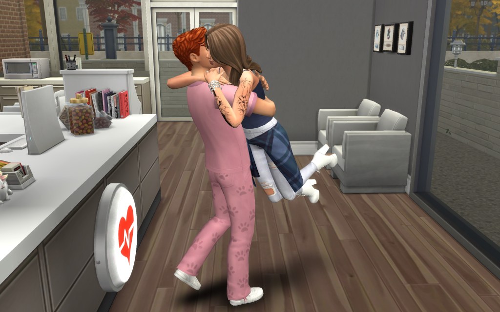 I swung her around the clinic while she laughed. I could feel her breath on my neck and it gave me goosebumps.