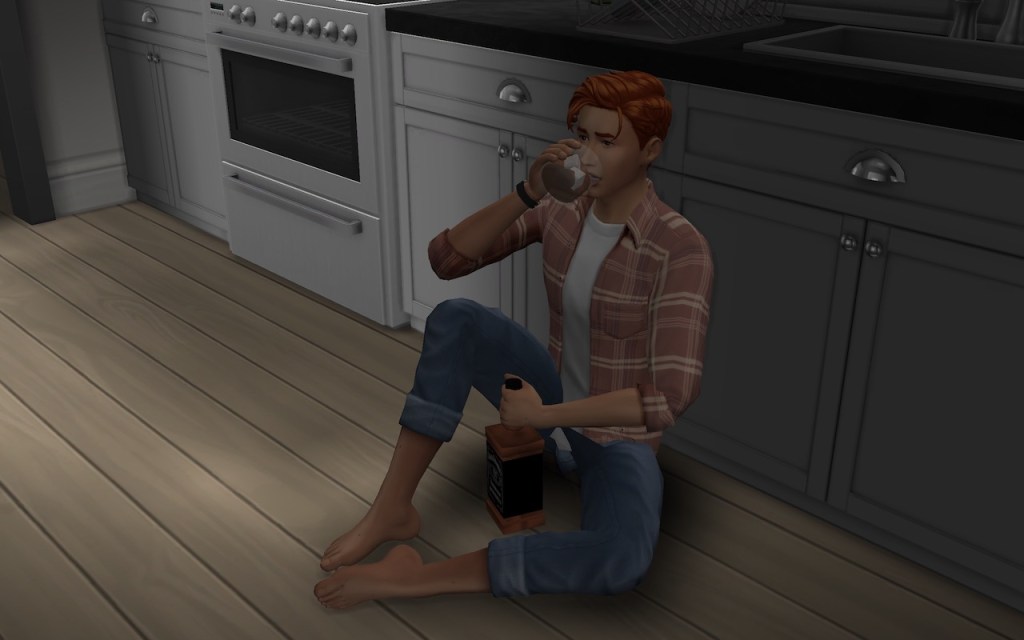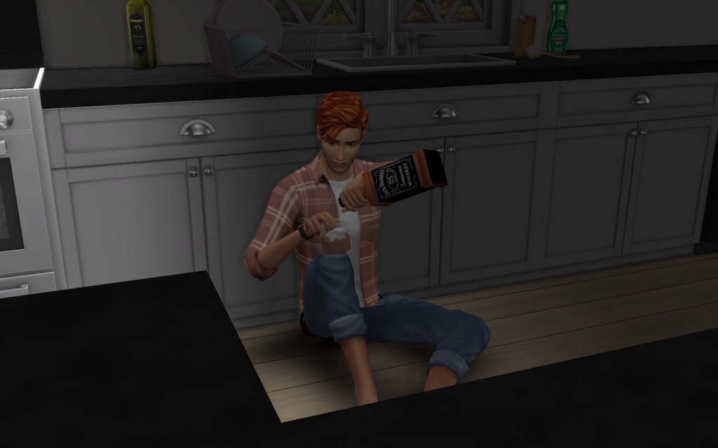 I found a bottle in the back of the liquor cabinet and sat in the dark kitchen.
