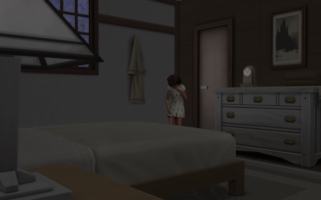 I curled up on the big, empty bed. Surely, my dad would come. He had to sleep sooner or later.