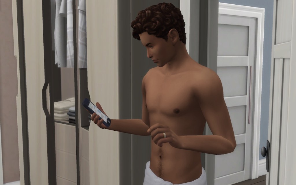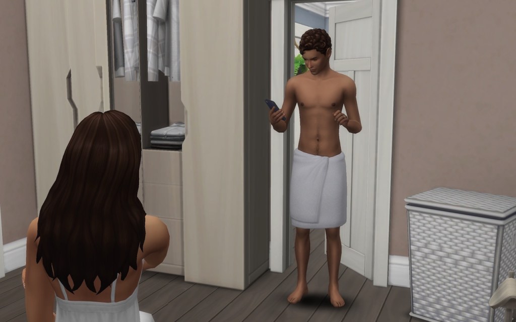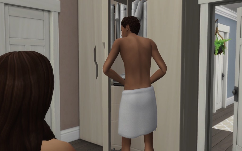 I had just gotten out of bed as Samuel entered the room. He came straight from the shower after sleeping on the couch again.