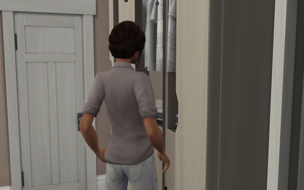 I finally settled on some worn out jeans and found an old black shirt in Samuels’s side of the closet. He hadn’t worn it in years, it was too small. I just never got around to getting rid of it.