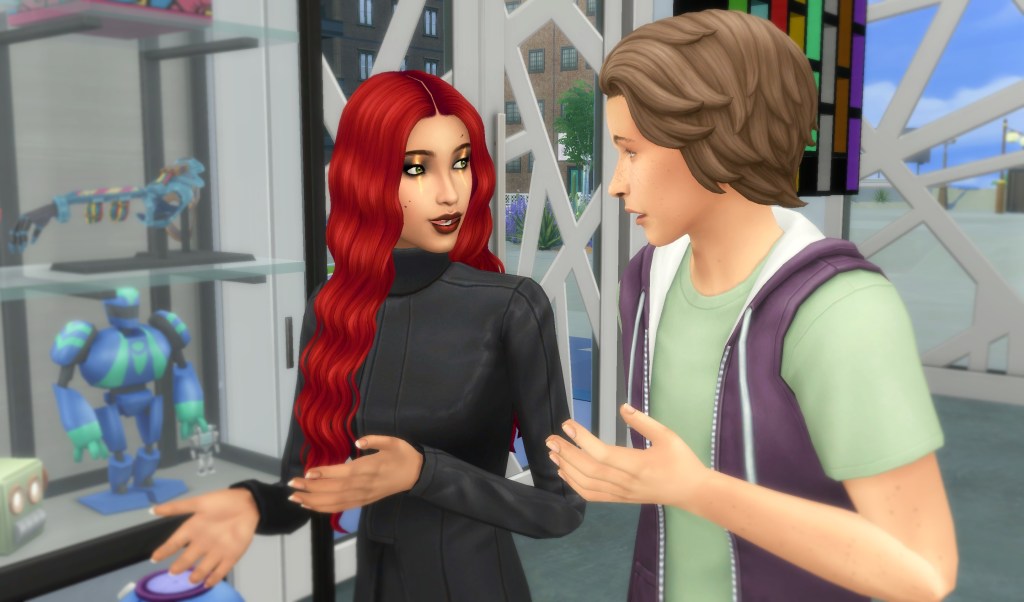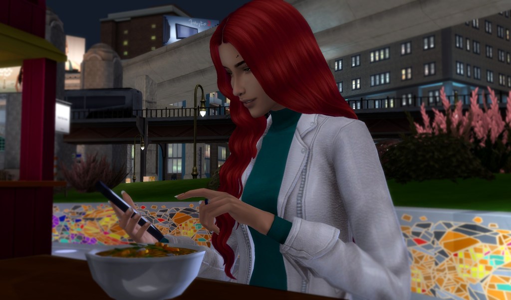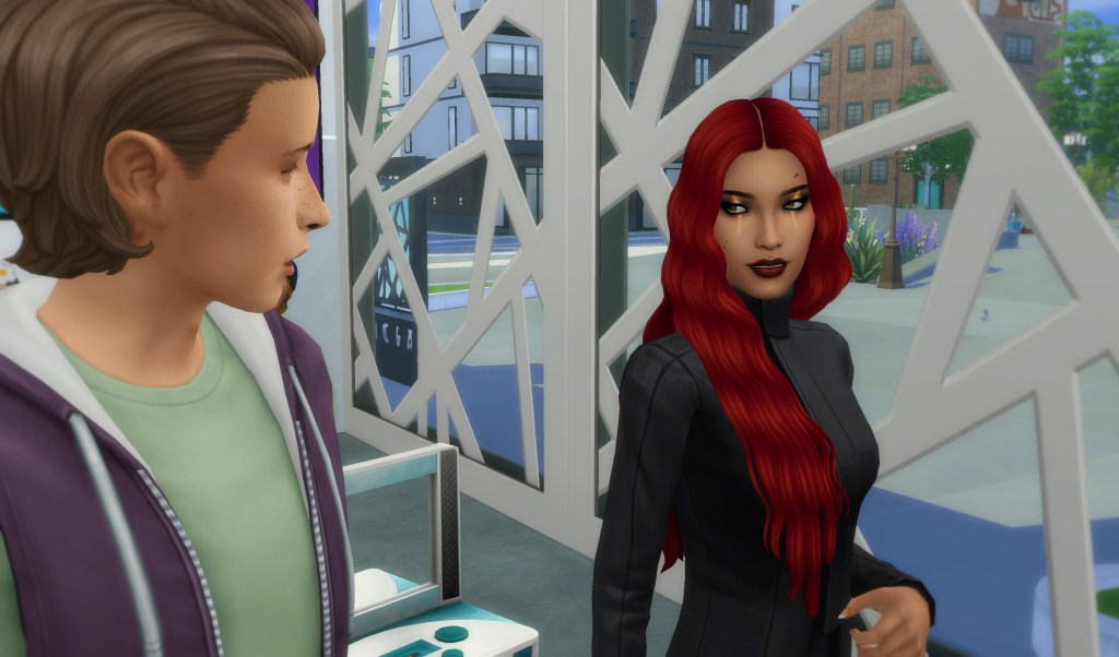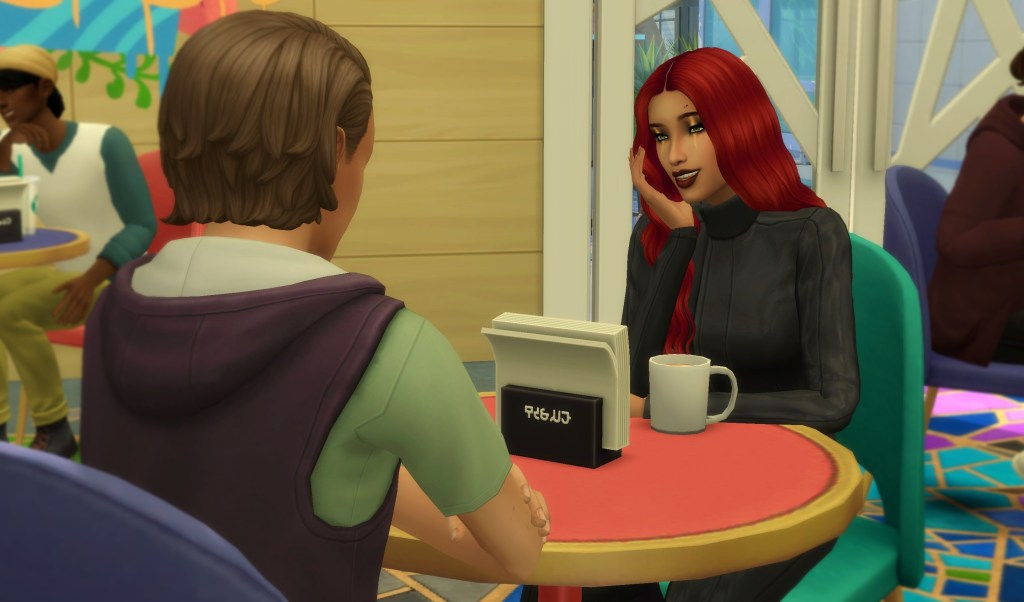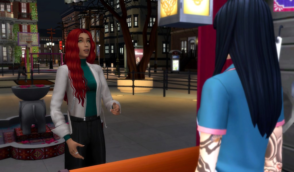 I settled into city life surprisingly quickly, especially as I started meeting some of my online friends in real life. Like Samara. We’d known each other online for a while, but hadn’t met in person until I moved to San Myshuno.