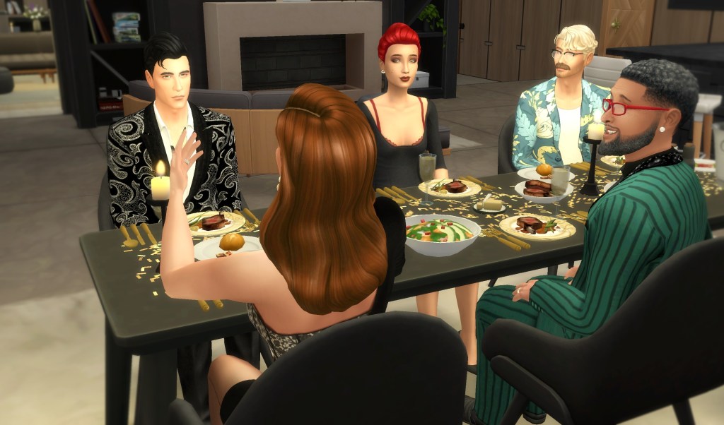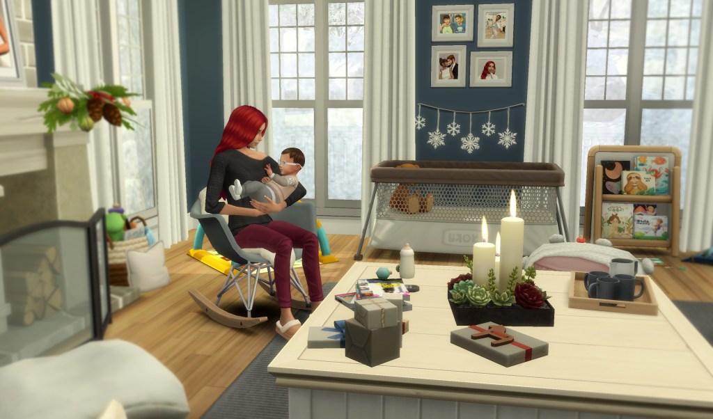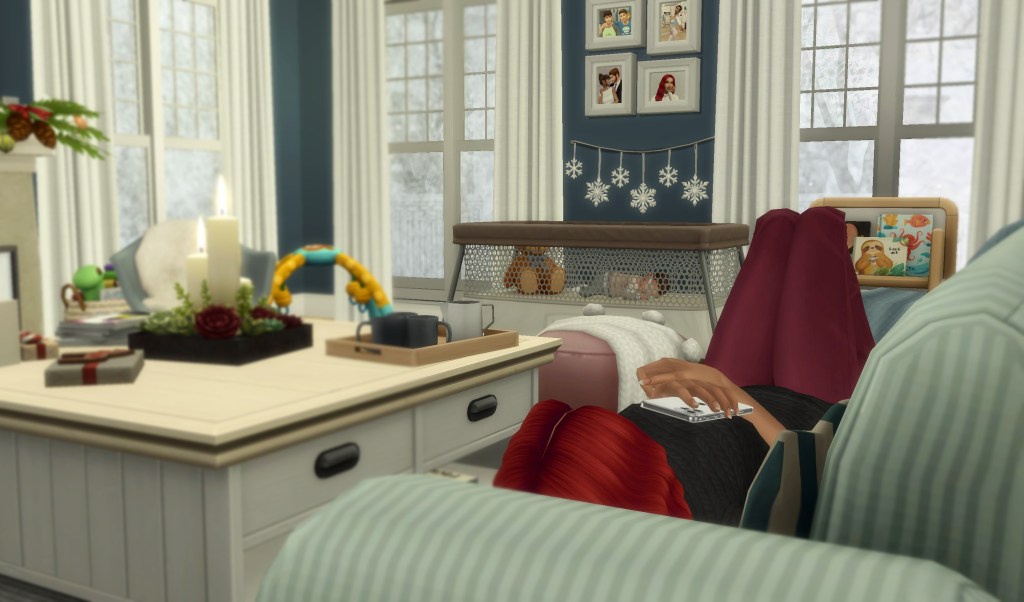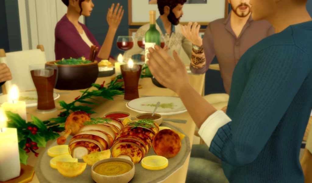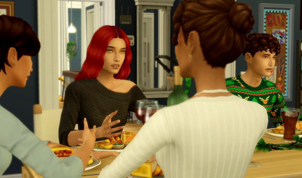 I loved my apartment in San Myshuno, but being back in my parent’s house still felt like coming home. There was something comforting about Winterfest Eve being the same as always, especially since my life had changed so dramatically in the last year. The same familiar food, the same old Winterfest plates, my brothers kicking me under the table and blaming each other as usual – everything just felt right. The only real change compared to last year was baby Grayson, and he was more than welcome.