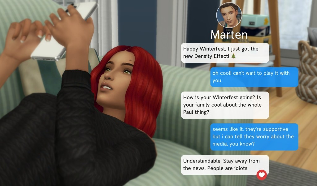 Ivy excitedly told us about her dance studio and Windenburg, and I talked about my life in San Myshuno, my work, and my new friends. I tried to avoid talking about the whole paparazzi thing, but of course my mother and Ivy wanted to know more about Paul. I told them the basics, but the secrecy around our relationship had almost become second nature, and it felt wrong, too intimate, to tell them any details.