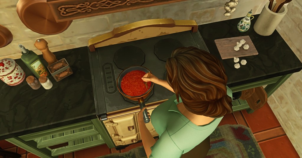 A copper pot simmers on low heat on the old stove. Teresa’s kitchen was always my favourite room in this house, filled with delicious smells and tastes. Ever since I could walk, I kept ending up in the kitchens, both here and at the vineyard, and my grandmother and aunts never hesitated to put me to work.