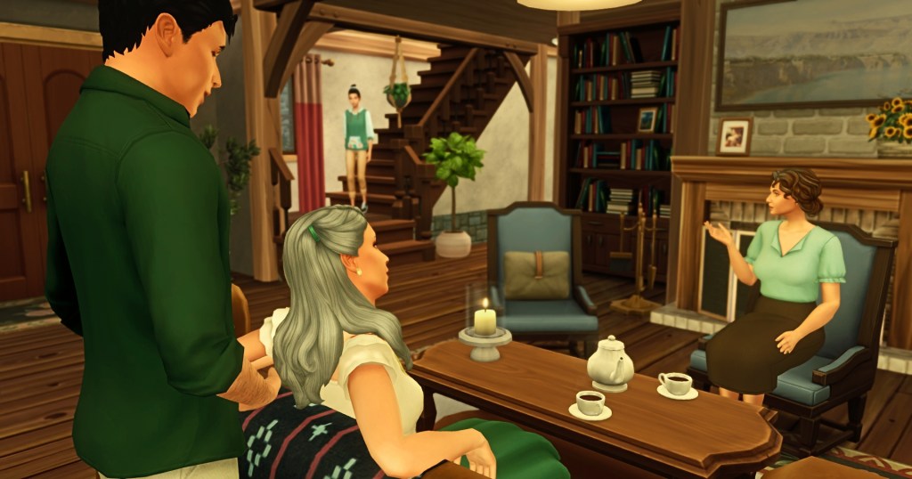 Teresa shakes her head, smiling, then calls towards the stairs. “Sofia? Come down, please.”